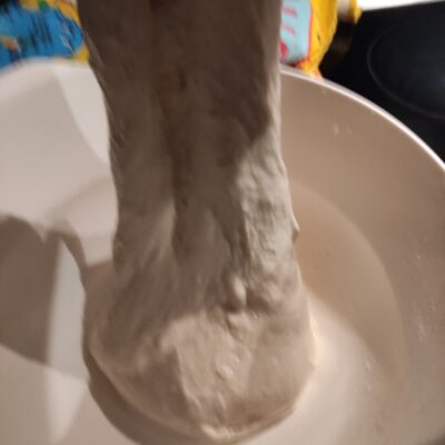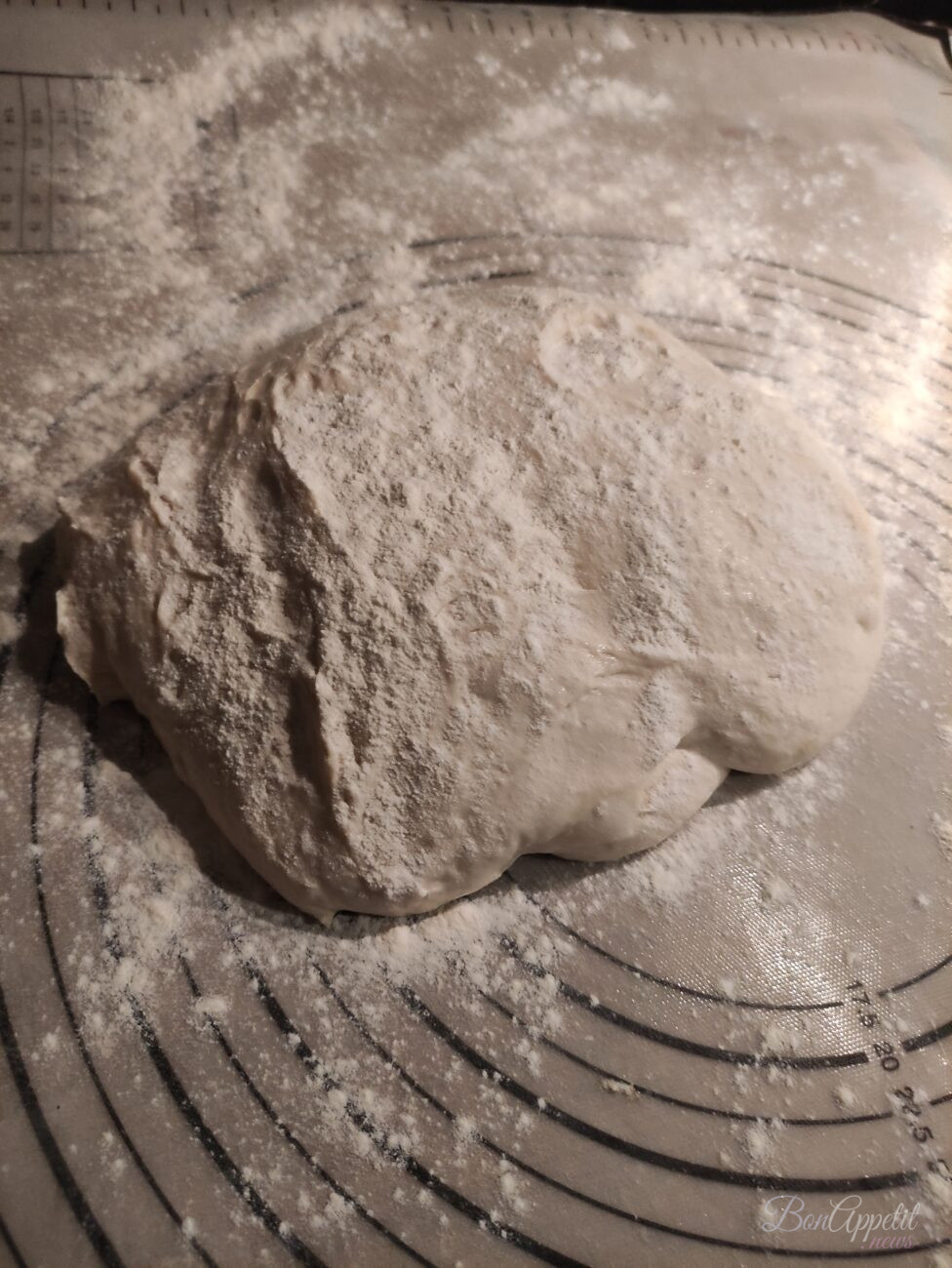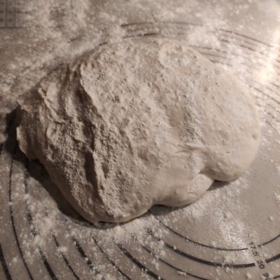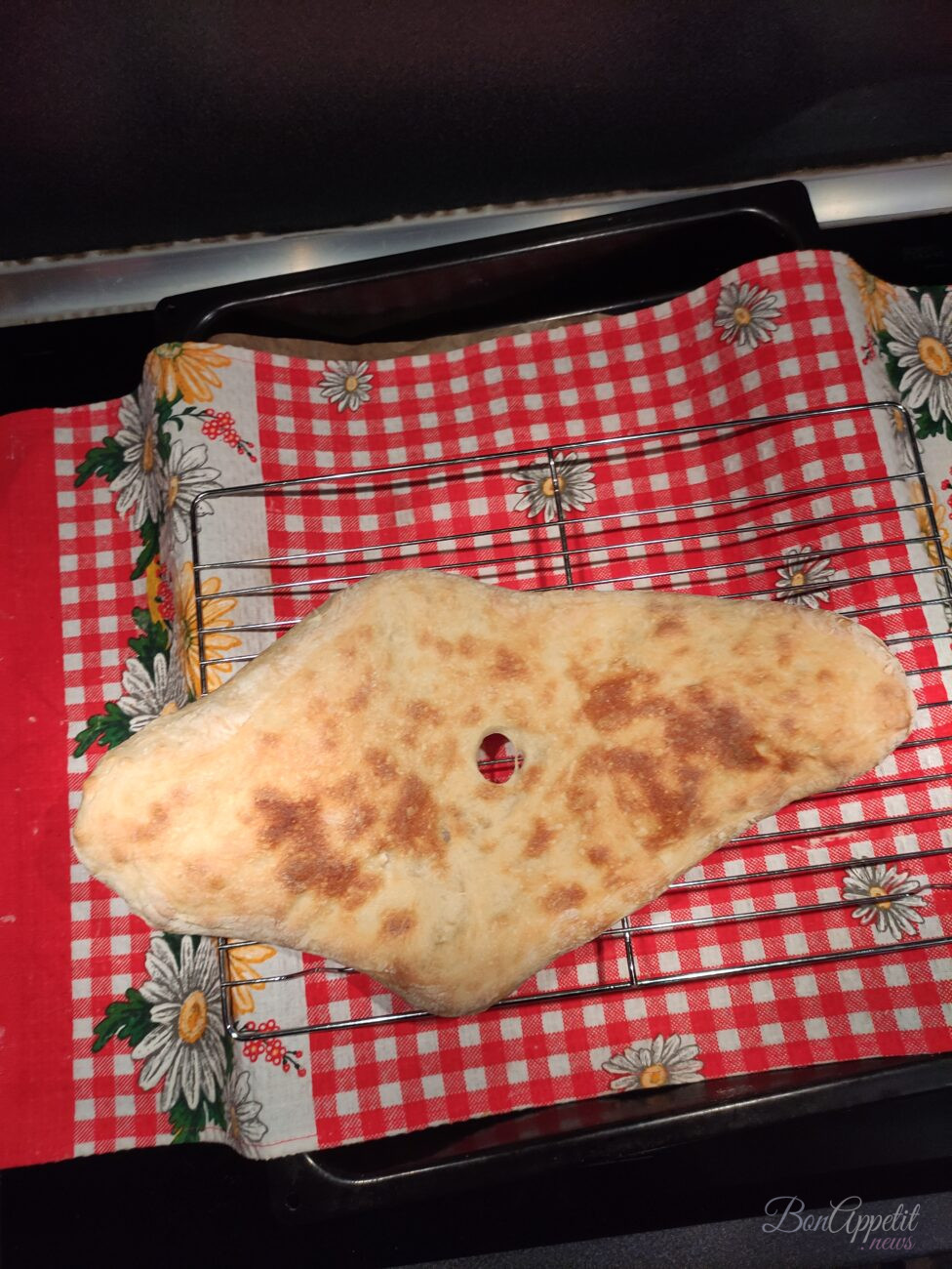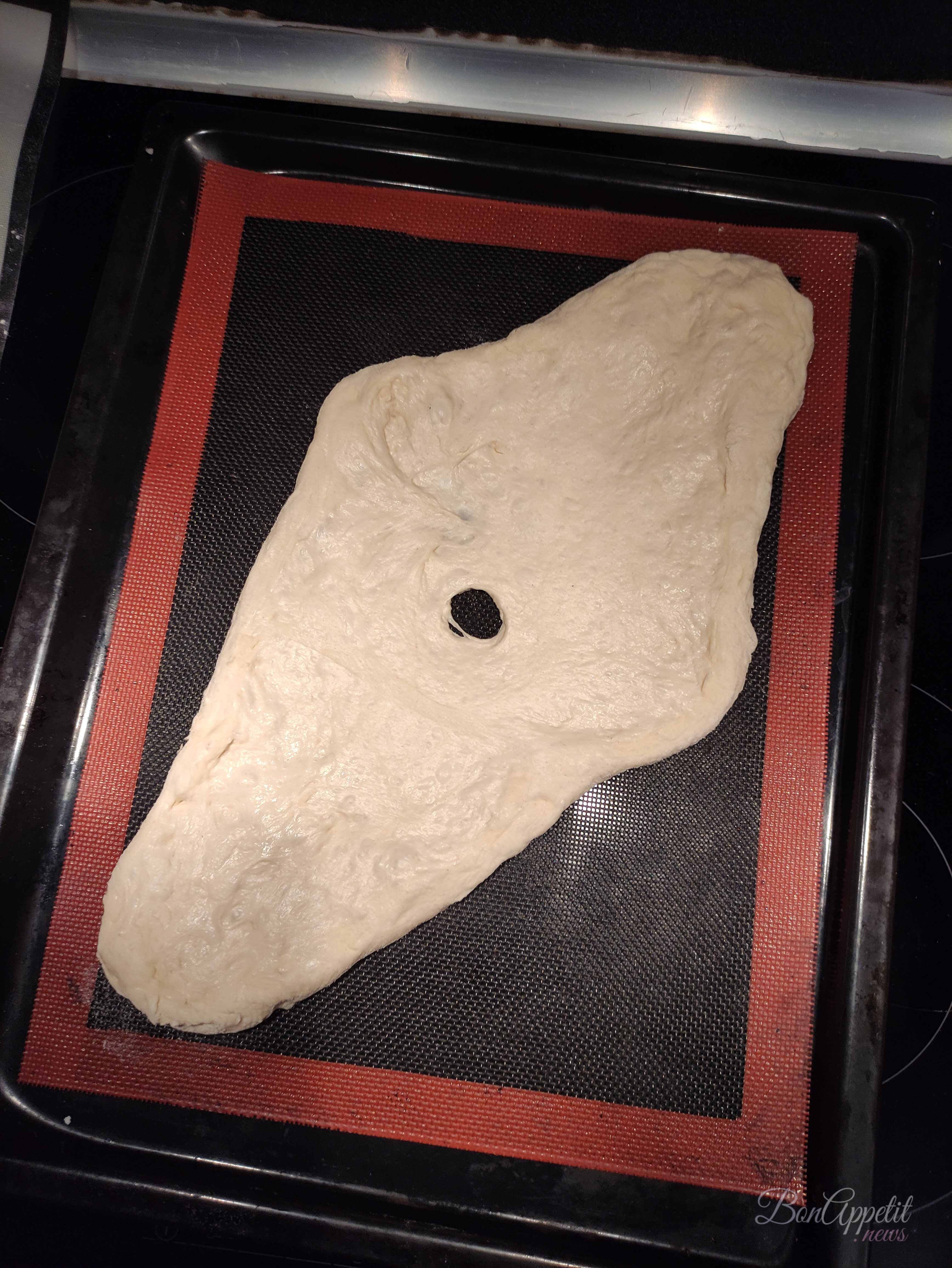 Сформируйте влажными руками лепешку на силиконовом коврике или на пекарской бумаге. В центре проделайте дырочку для аутентичности. В нашем случае, мы выпекаем в духовке и она не несет никакой функции. Так как раньше такие лепешки выпекались в глиняных печах и приклеивались к стенкам. Снимались специальным крючком за эту дырочку. |