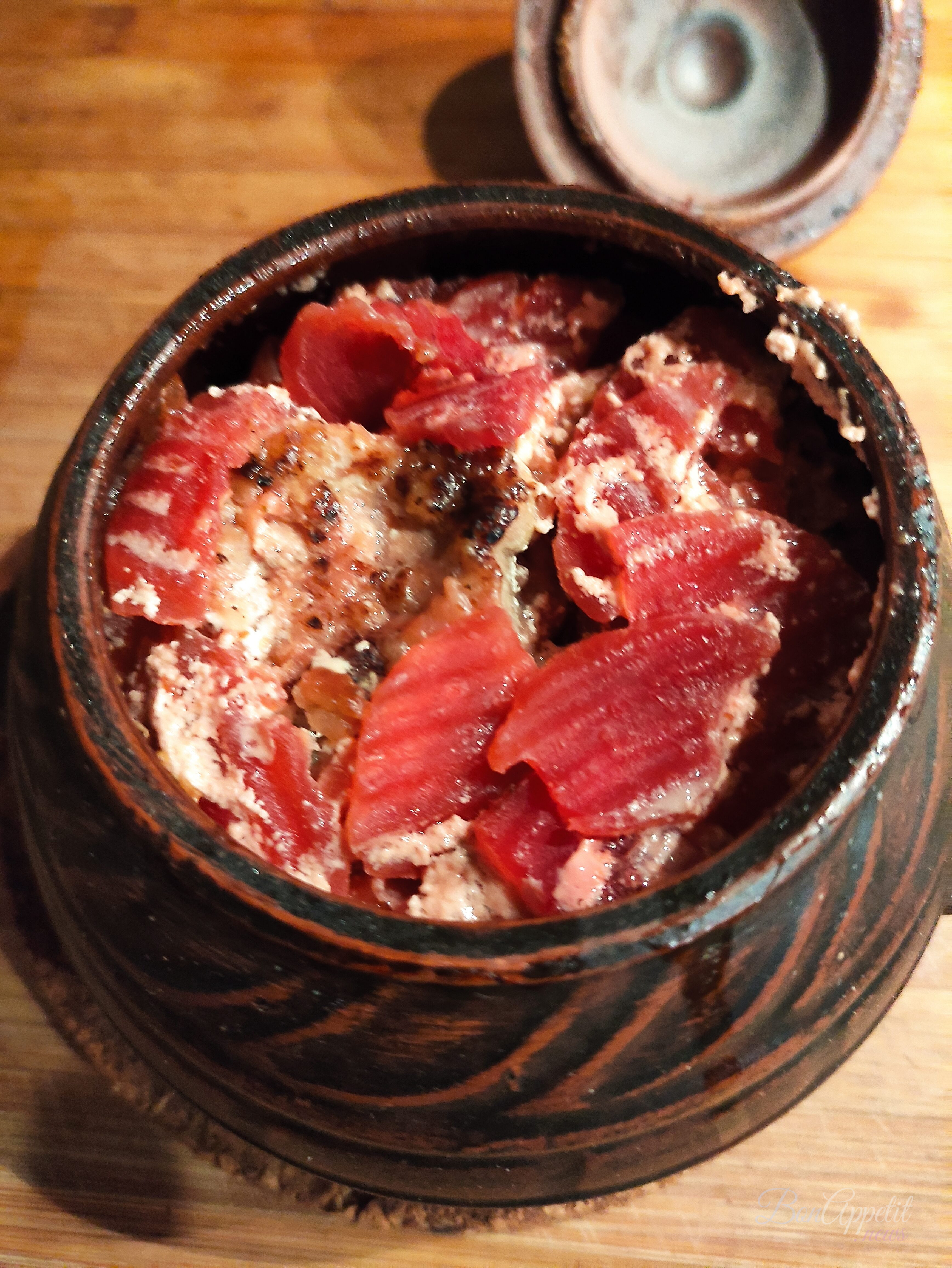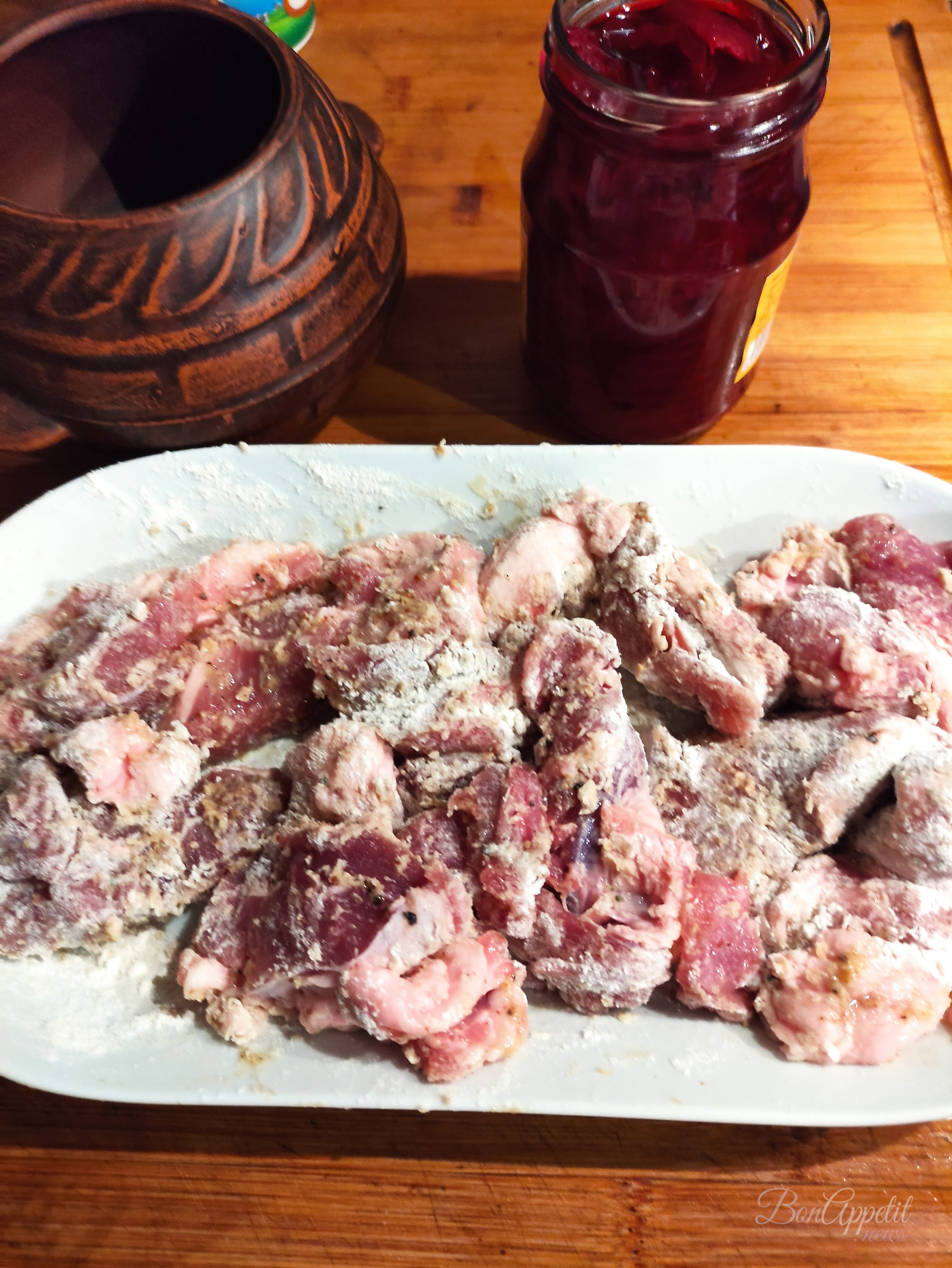 Это блюдо с многовековой историей, упоминание о Шпундре есть у Котляревского в книге «Энеида». В классическом варианте это блюдо готовится со свининой и маринованной свеклой или свекольным квасом. Но в современной кухне используют отварную свеклу и уксус. Также свинину заменяют говядиной, курицей и даже бараниной. Я попыталась приблизить приготовление Шпундры к классическому варианту и обжаривала на сале, запекала в глиняном горшке. Вы же можете использовать любую удобную для вас посуду для запекания (утятницы, гусятницы, казаны…).
